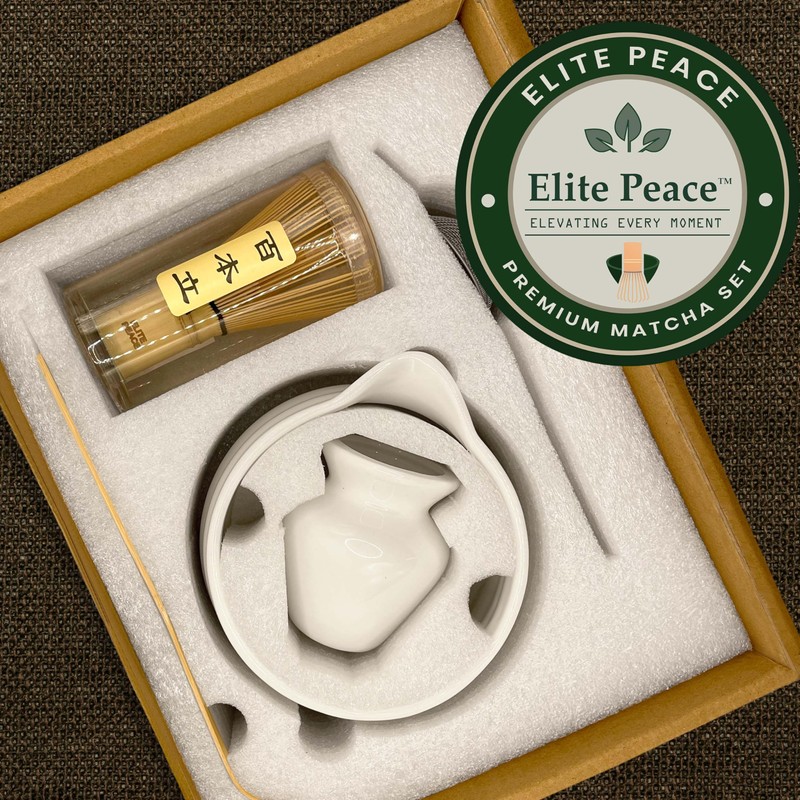 Elite Peace - 5-Piece Matcha Whisk Set - Bamboo Whisk Ceramic Matcha Bowl wit...