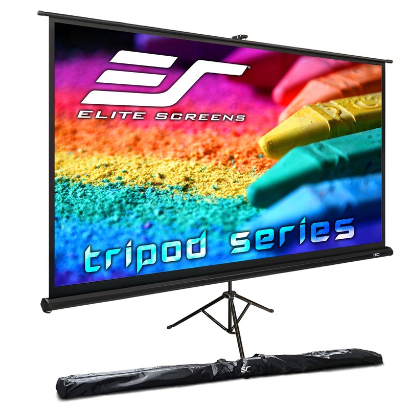 The Elite Screens Tripod Portable Projection Screen is ideal for indoor and outdoor small or large venue presentations, this proven and reliable tripod portable projection screen combines precision with the elegance of a traditional design. Its rugged construction will withstand the rigors of daily usage while its adjustable locking ring provides ease in its adjustable height settings.
