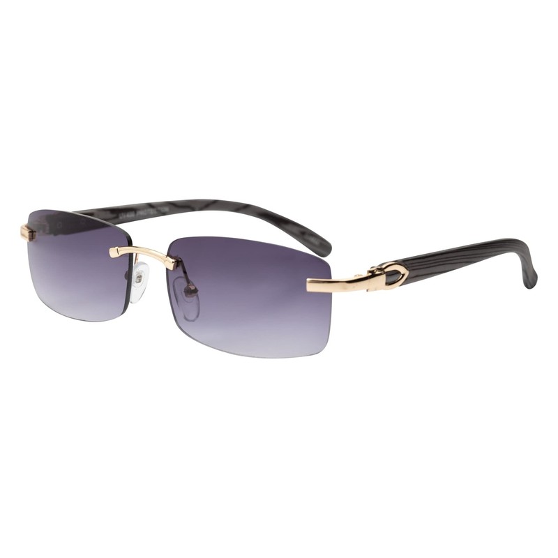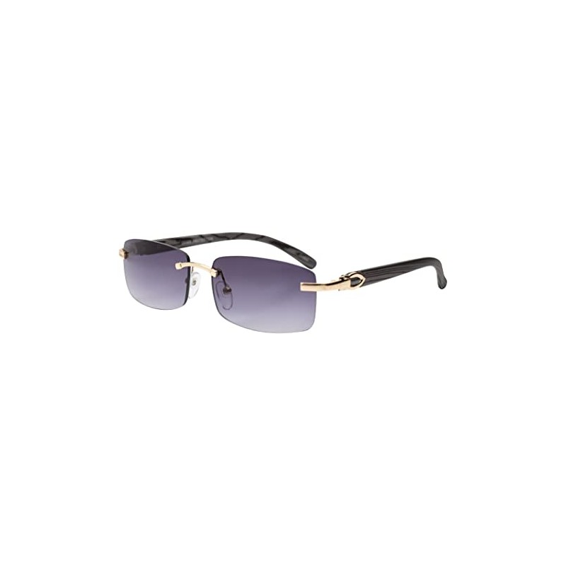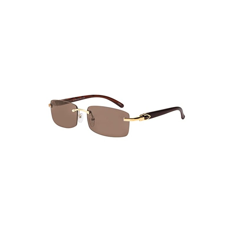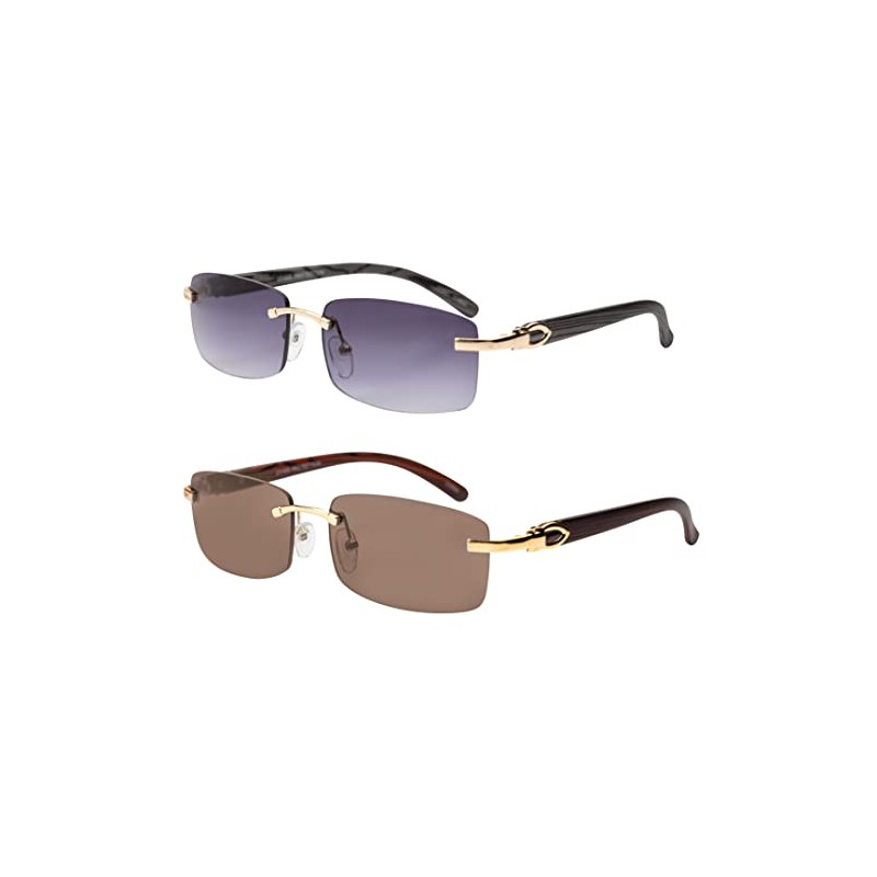 Elite Slim Rimless Rectangular Metal & Wood Art Aviator Sunglasses (2 PACK: Smoke-Brown)