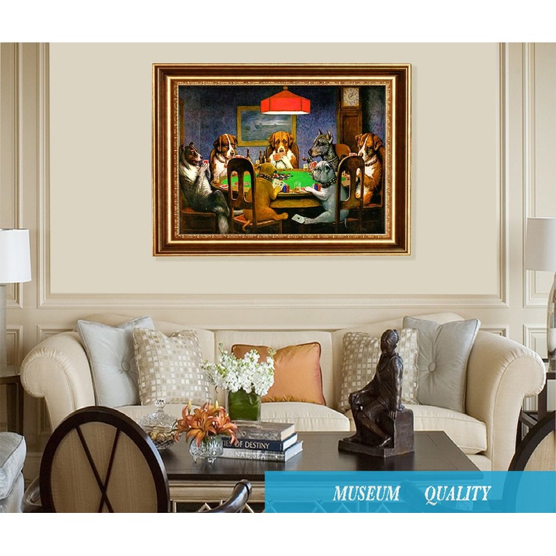 ELITEART-Dogs Playing Poker by Cassius Marcellus Coolidge Oil Painting Reproduction Giclee Wall Art Canvas Prints-Framed Size:23 1/4" x29 1/2"