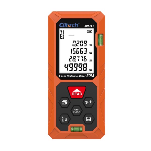 Elitech Laser Distance Meter 50M, Digital Measure Tool with Area Volume Pythagoras Mode, 99 Data Records, ±2mm Accuracy, Ft/In/M Unit Switch, Ideal for Home DIY & Interior Design – LDM-50D