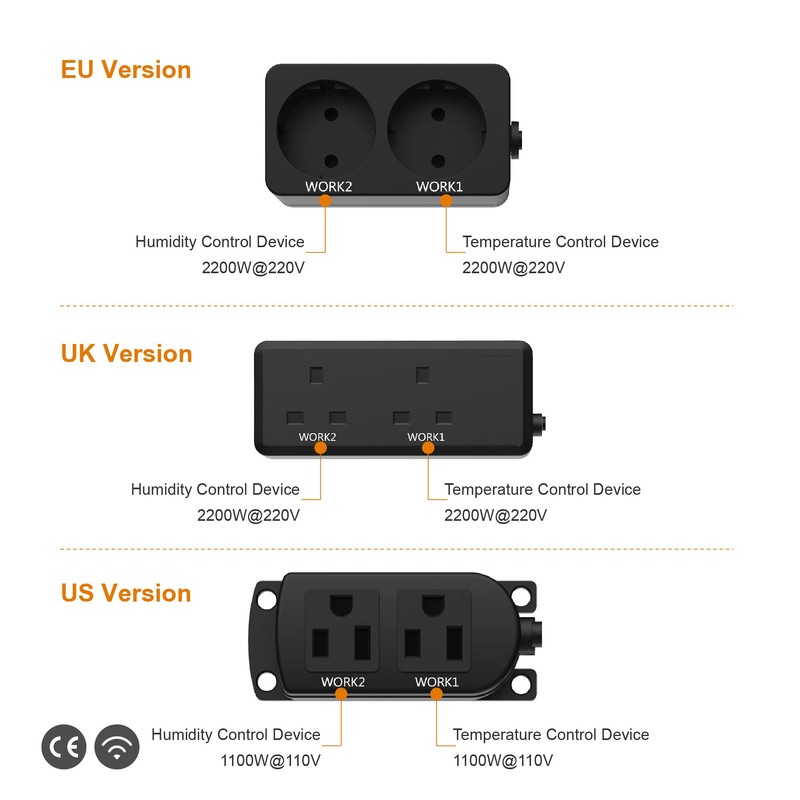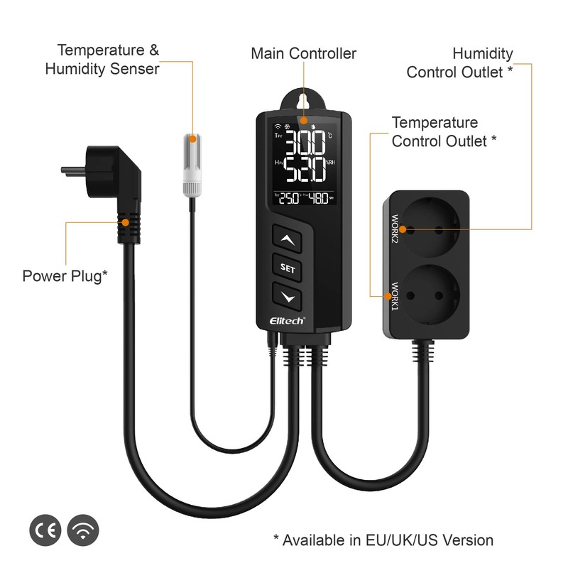 Elitech Thermostat Temperature Controller & Humidity Controller Temperature Control Sockets 220 V with Sensor Probe, WiFi Version, for Greenhouse Reptiles Terrarium