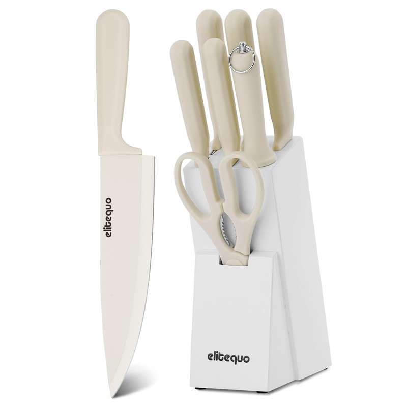 Elitequo 8 Piece Kitchen Knife Block Set with Sharpener,Dishwasher Safe,German Stainless Steel with Anti-slip Handle