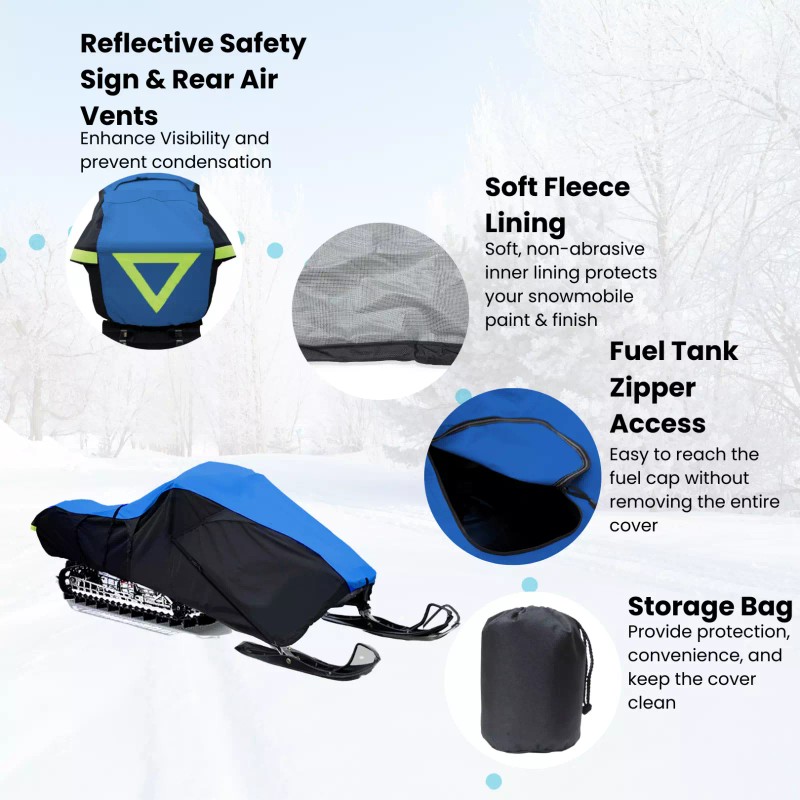 Protect your Yamaha SX 500R, 600R, or 700R Viper Sled with our Heavy Duty EliteShield snowmobile cover. Designed for durability and functionality, this semi-custom fit cover is crafted from 600D polyester UV treated to withstand the harshest winter elements. It features a waterproof, tear-resistant fabric that is fade resistant and offers UV protection, ensuring your snowmobile remains shielded from sun damage and environmental wear. The cover includes elastic hems, straps, and buckles for secure mooring and trailering, an essential accessory for your winter adventures. It also boasts a fuel tank zipper access, air vents to prevent condensation and moisture buildup, and a safety sign that reflects bright light for added visibility. The soft-lined construction ensures your snowmobile's bodywork remains scratch-free, making it a reliable companion for your snowy trails.