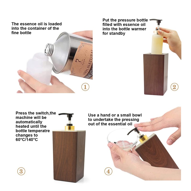 - After purchase you will get a heating bottle, a 270ml/9.13Fl.oz plastic bottle, a 250ml/8.45Fl.oz metal bottle. In order to avoid rapid high-temperature heating, resulting in the decomposition and denaturation of massage oil, the product is heated at low temperature for a long time, at least half an hour in advance before use. Use the plastic bottle for lube or gel, use the metal bottle for massage oil.