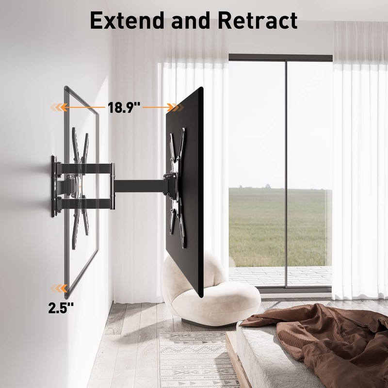- Heavy Duty & Durable & Sturdy - The strong articulating 3-arm structure with cold-rolled steel ensures reliable strength and provides you sufficient swivel angle. Automatic robot welding technology makes the whole TV mounting bracket unit sturdy and has a good appearance.