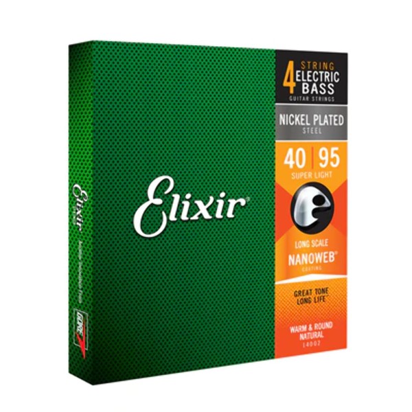 Elixir Bass Guitar Sets Ultra-Thin Nanoweb Coating Long Scale, 4 String - Super Light (0.040 - 0.095)