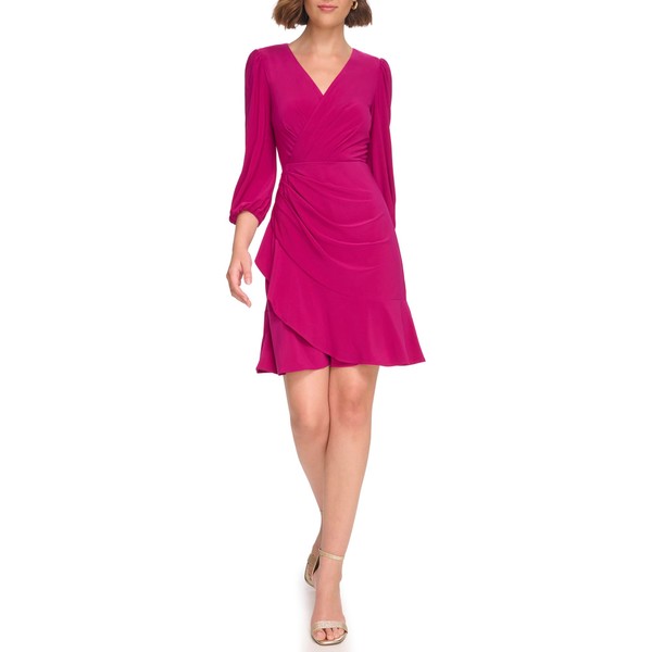 Eliza J Women's 3/4 Sleeve V-Neck Short Dress, Fuschia, 6