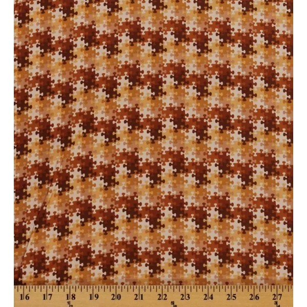 Elizabeth's Studio Cotton Summertime Jigsaw Puzzles Pieces Tan Fabric Print by the Yard D510.12