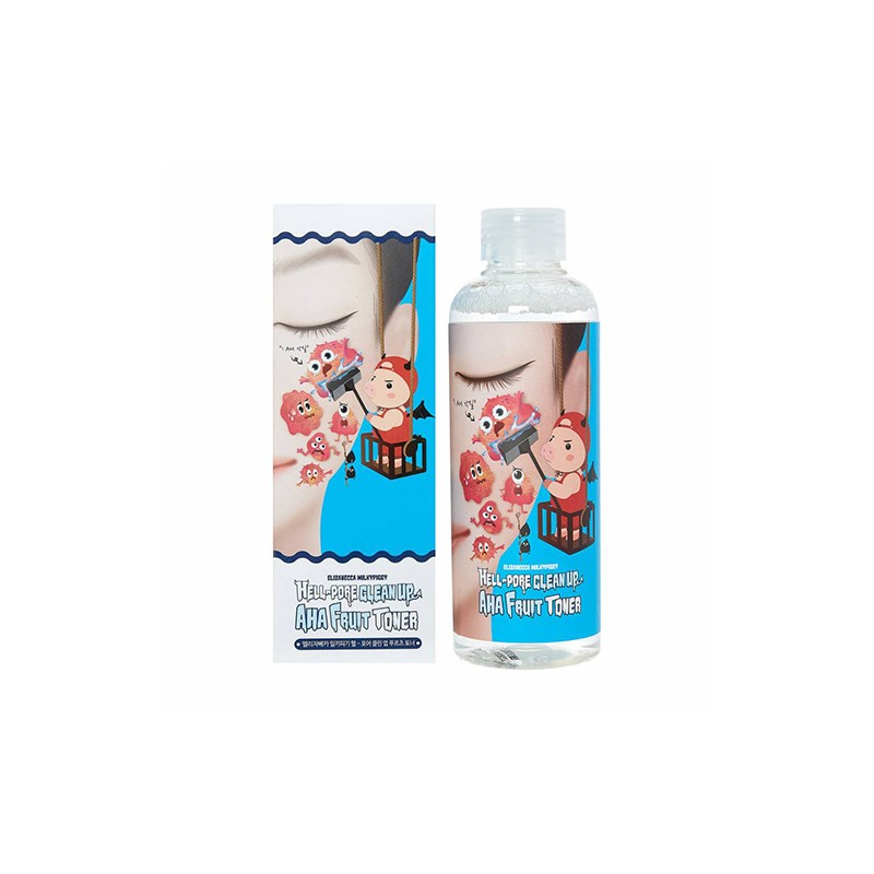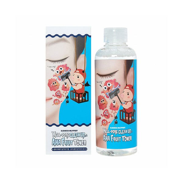 Elizavecca's purifying Hell Pore Clean Up AHA Fruit Toner contains premium fruit extracts, and both BHA and AHA to thoroughly cleanse, exfoliate, and hydrate the skin! As dry, old skin is swiped away, your skin is refreshed and rejuvenated as a result of improved cell-renewal.