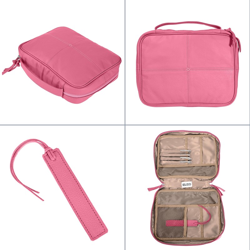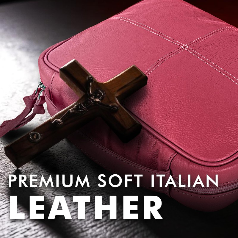 ELIZO Leather Large Bible Cases for Woman - Leather Bible Cover for Women - Leather Bible Cover for Men - Bible Carrying Case for Women Pink Bible Cover Religious Gifts Christian Gifts Bookmark - Pink