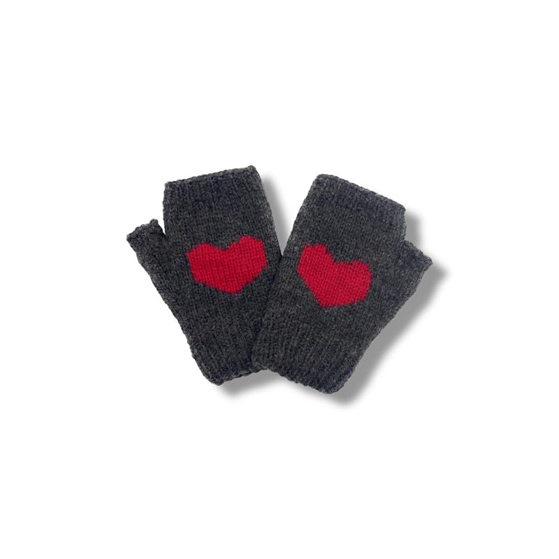 Ella Sussman Hand Knit Alpaca Heart Fingerless Short Glove Fleece Lined Winter Texting Driving Warm Bolivia (Dark Gray With Red Heart, Medium)