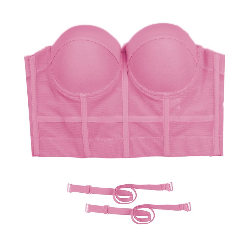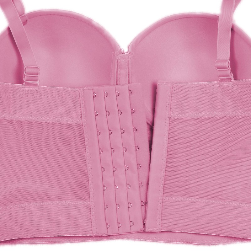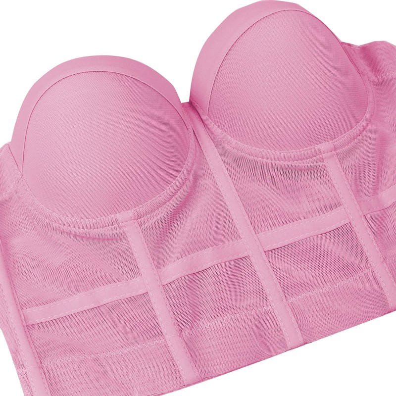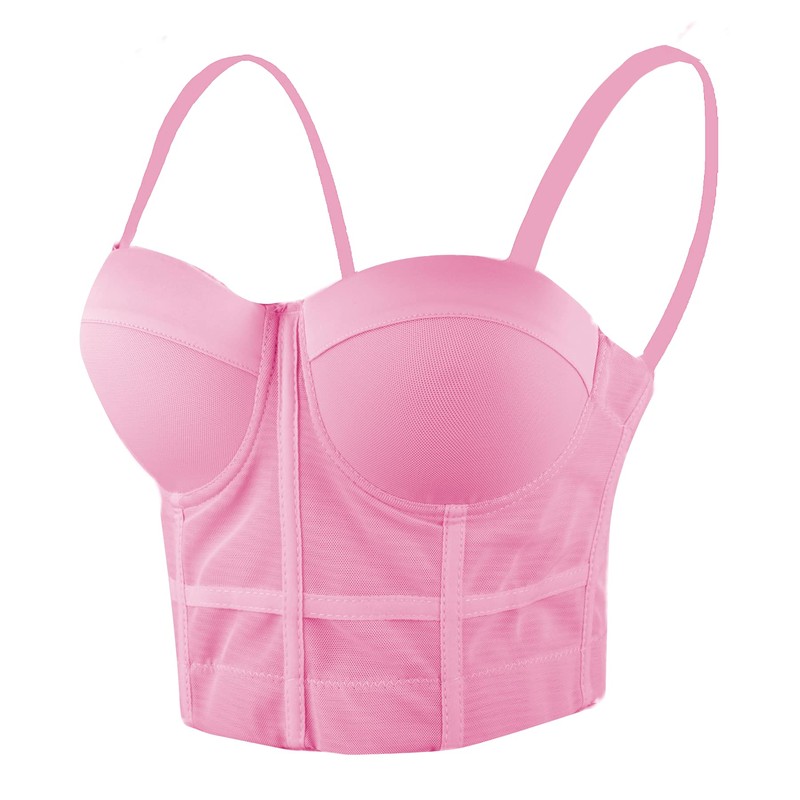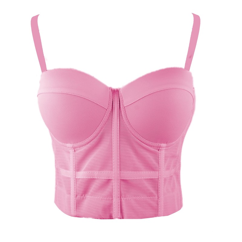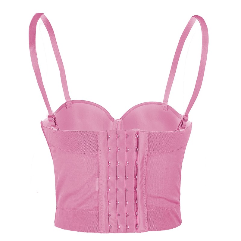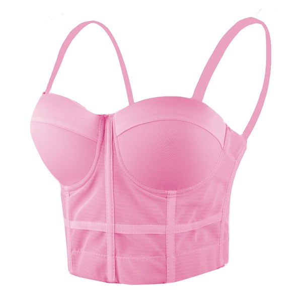 ELLACCI Women's Mesh Bustier Crop Top Push Up Corset Tops Bra Pink Medium