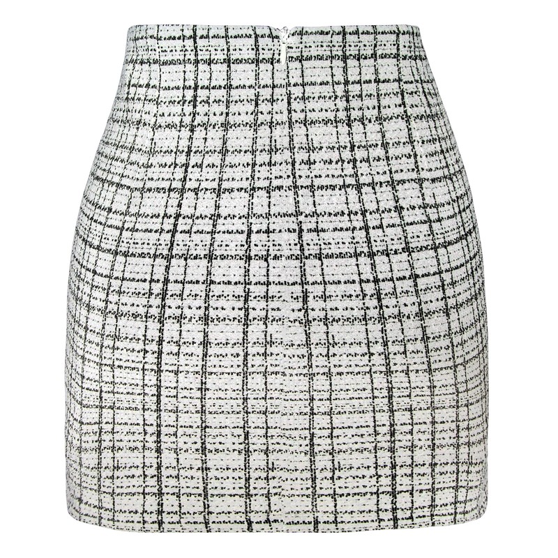 Ellames Women's Mini Club Skirt Basic Bodycon High Waist Pencil Skirts with Zipper Tweed White Medium