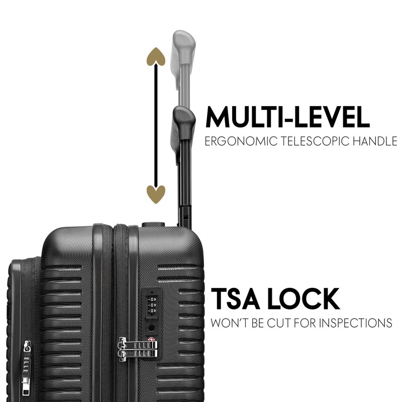 - Stylish Look: With its sleek design and elegant finish, the ELLE Escape suitcase adds a touch of sophistication to your travels.