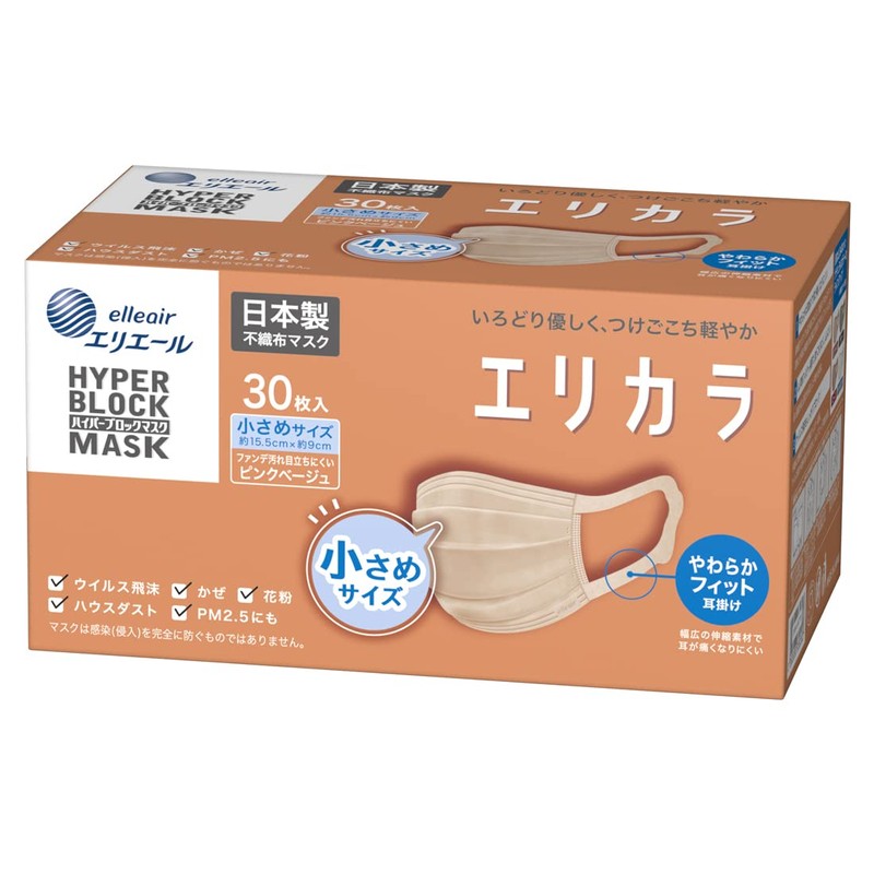 Elleair Hyper Block Mask, Made in Japan, Lilacara Pink Beige, Small Size, 30 Pieces, Compatible with PM2.5