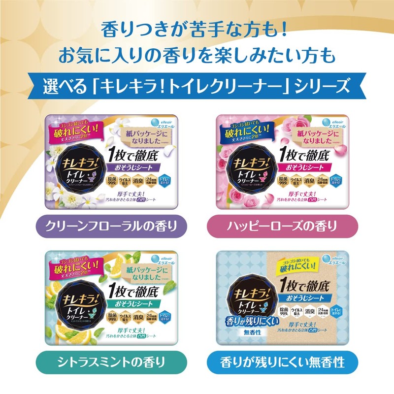 Elleair Kirekira! Toilet Cleaner, Refill, 20 Sheets, Citrus Mint, Clean Thoroughly with 1 Sheet