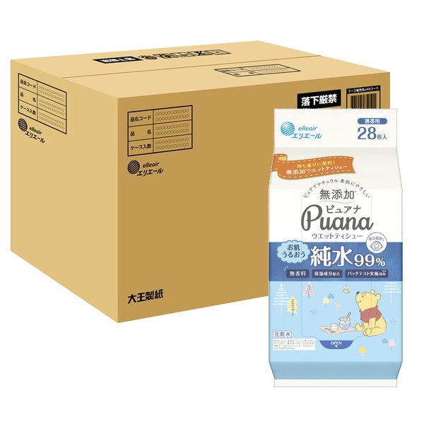 Elleair Puana Wet Tissue, No Additives, 99% Pure Water, Portable, 28 Sheets