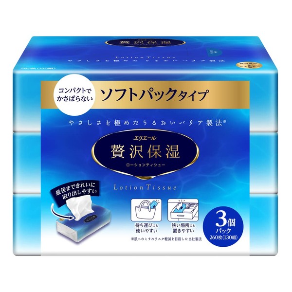 Elleair Soft Pack Tissue Luxury Moisturizing 130 Pairs x 3 Packs