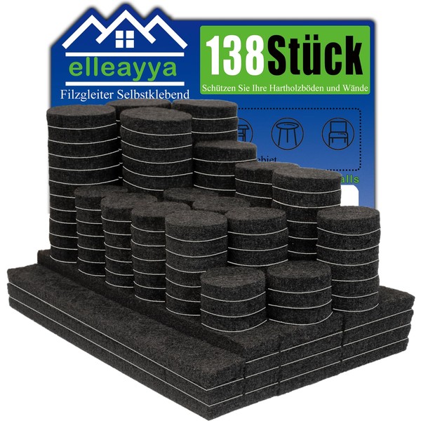 elleayya Filzgleiter Selbstklebend, Filz fr sthle (138 Stck: rechteckig und Rund, Schwarz) Professionelle M?belgleiter mit starker Klebkraft zum Schutz von Holzfu?b?den