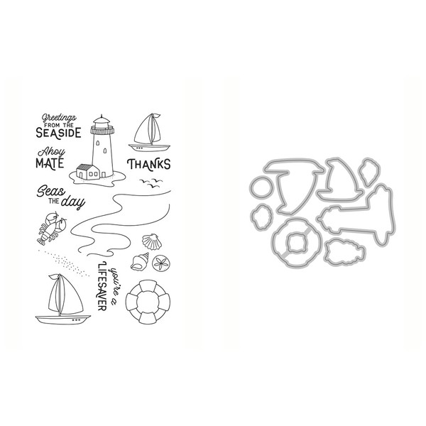 - Take a much needed break and sail away from your worries (and housework!) with the help of the nautical images in this Seaside stamp & die combo. This set is perfect for Thank You cards, encouragement cards, greeting cards, and more.