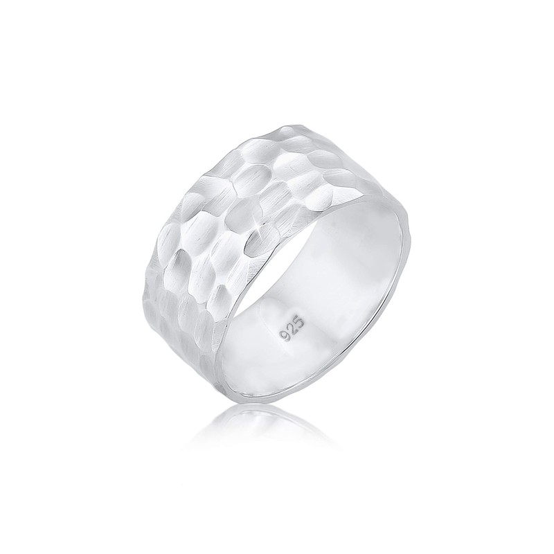 Elli Basic Women's Band Ring Hammered in 925 Sterling Silver, None