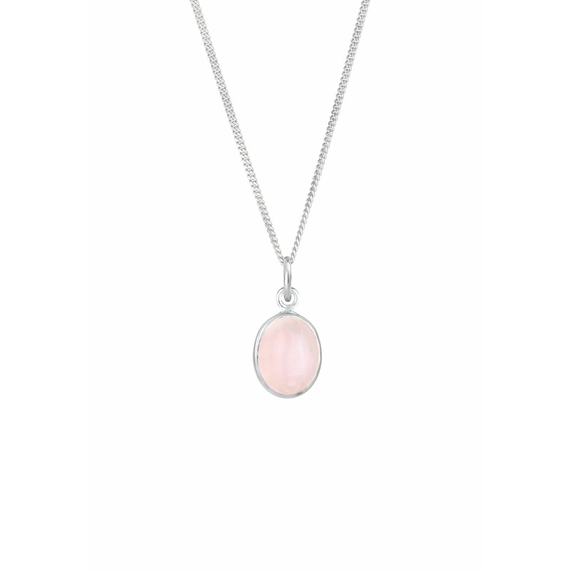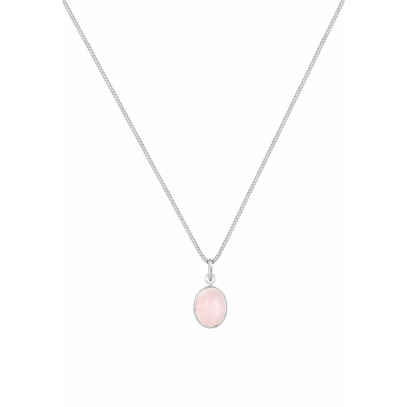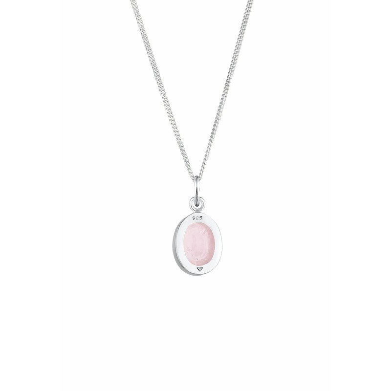Elli Necklace Women Pendant Basic Elegant Round with Rose Quartz in 925 Sterling Silver