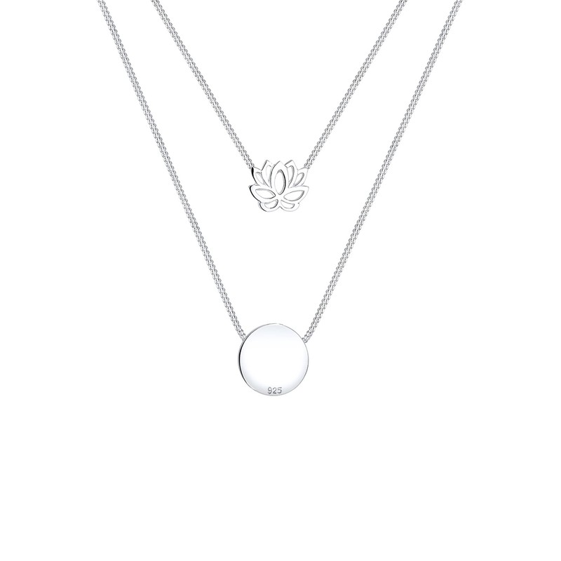 Elli Women's Lotus Flower Om Mantra Symbol Layer Look Necklace in 925 Sterling Silver, Silver, No Gemstone