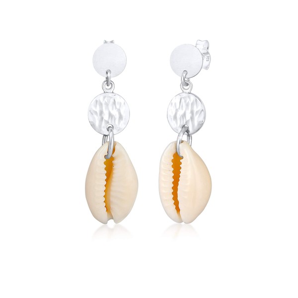 Elli Women's Pendant Earrings Kauri Shell Sea Plate in 925 Sterling Silver, Shell, None