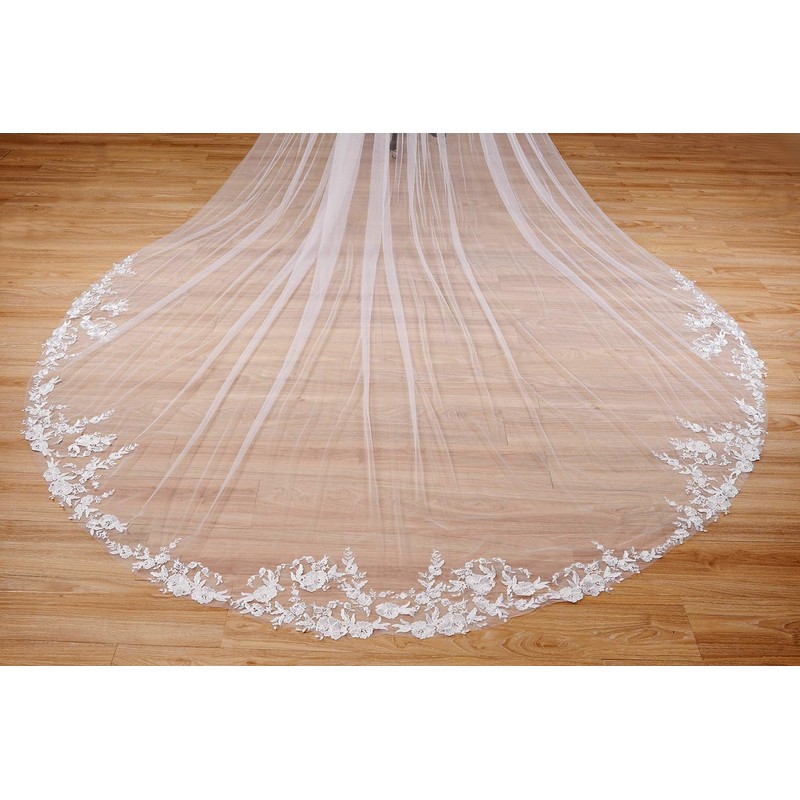 - El velo se caracteriza por un diseño de 1 nivel y un encaje exquisito. Perfecto para combinar con tu vestido de boda. La cola es grande y redonda. Elección brillante para bodas al aire última intervensión, catedral