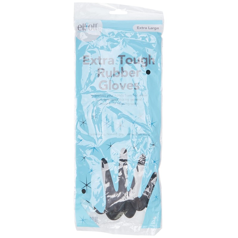 Elliott Heavy Duty Household and Maintenance Rubber Gloves, Extra large Gloves with breathable flock Lining and non-slip grip, One pair of Black Gloves