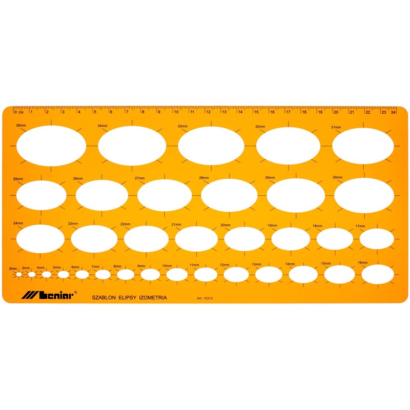 - This circle template from Leniar is essential for drawing at school or in the office. It contains isometric elliptical shapes in different diameters (2 to 35 mm)