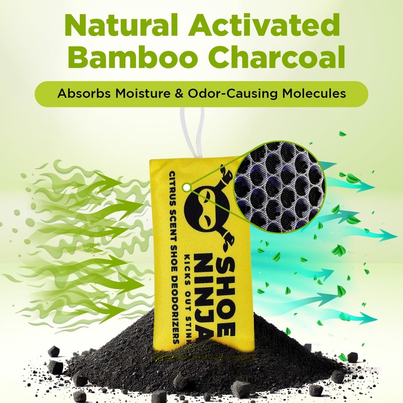 - NATURAL CHARCOAL: Powered by activated charcoal, Shoe Ninja naturally absorbs odors and moisture, acting as an effective shoe freshener and boot deodorizer. No chemicals—just fresh, clean shoes every time!