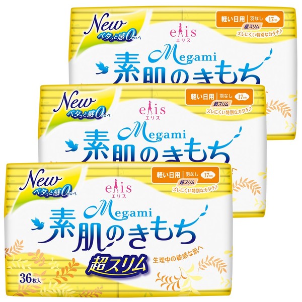 Ellis Megami Bare Skin Texture Ultra Slim Wingless 6.7 inches (17 cm) (Light Day), 108 Sheets (36 Sheets x 3 Pack) (Bulk Purchase)