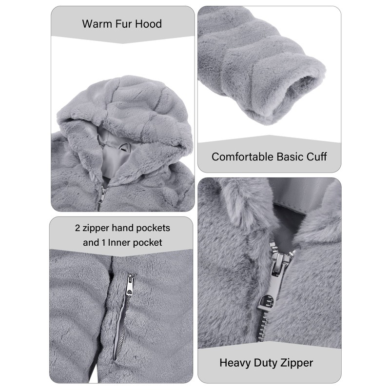 ellivera Women Faux Fur Coat, Fluffy Fuzzy Shearling Hood Jacket 120757 Lightgrey S