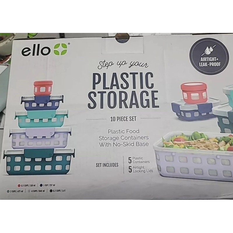 This Ello 10 PC Plastic Storage Food Containers Set is perfect for keeping your food fresh and organized. The containers are made of high-quality plastic and are designed to be airtight and leak-proof. They come with lids and are reusable, making them a great addition to any kitchen.