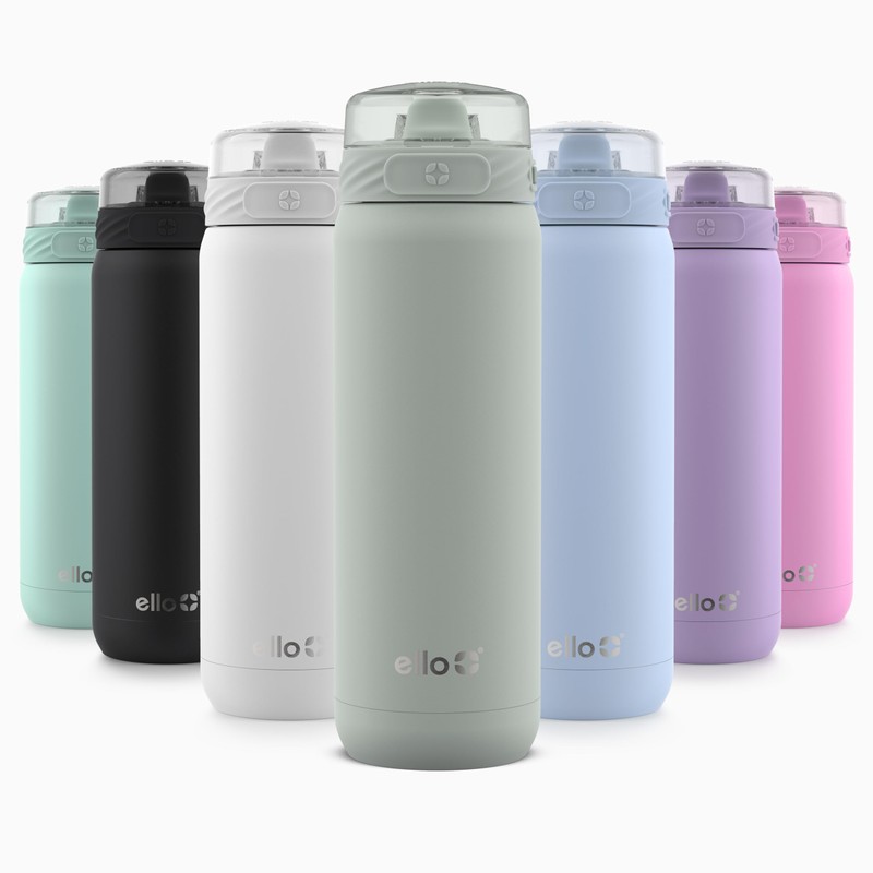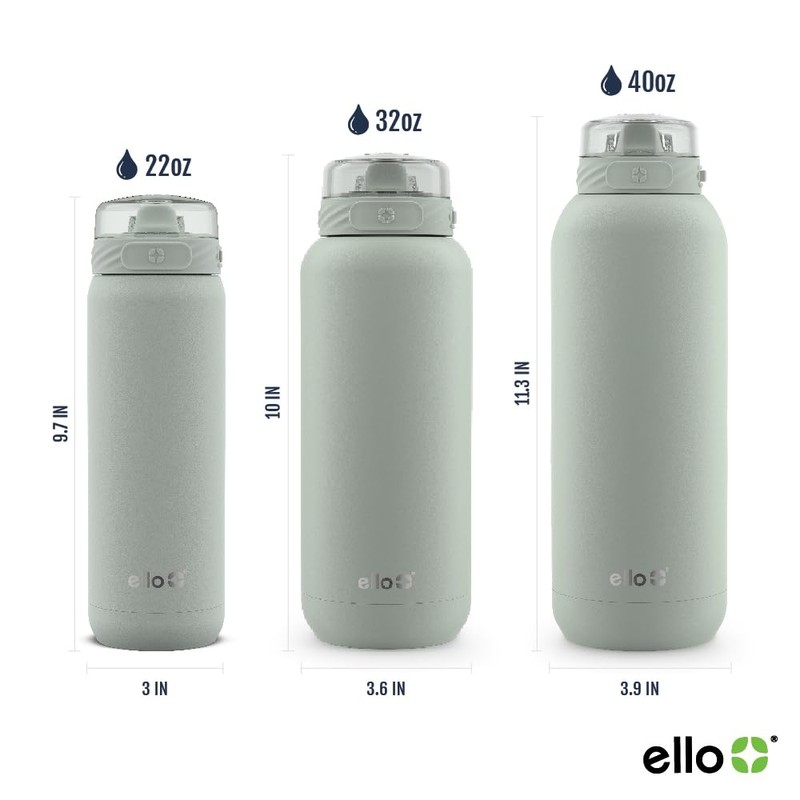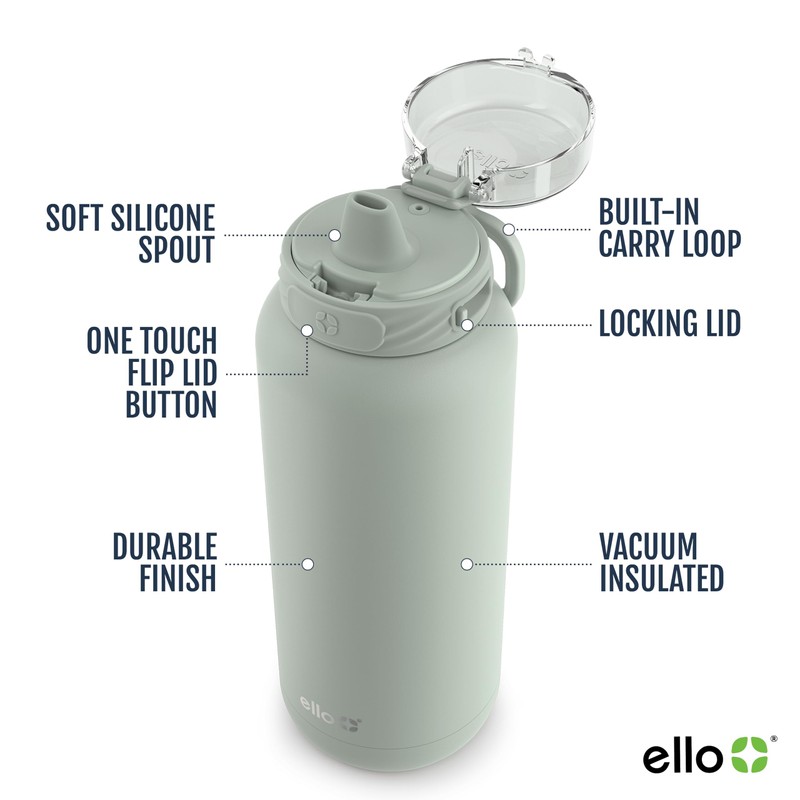 Ello Cooper 22oz Stainless Steel Water Bottle with Straw and Carry Handle, Double Walled and Vacuum Insulated Metal, Leak Proof Locking Lid with Soft Silicone Spout, Reusable, BPA Free, Sage