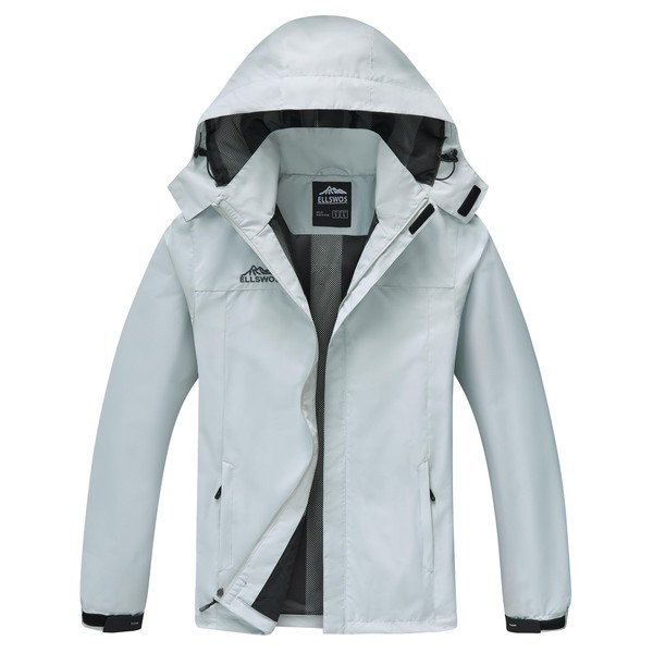 ELLSWOS Men's Waterproof Raincoat Lightweight Rain Jacket with Detachable Hood Softshell Windbreakerl for Hiking Travel