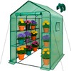- 🌱WALK-IN GREENHOUSE: Each side features 3 tiers 8 shelves, each 12" wide and supporting up to 22 lbs, providing ample room for pots and trays. With 17" of vertical clearance between shelves, plants have plenty of space to grow freely. The central walk-in area measures approximately 32" x 56" x 76", offering ample space for taller plants or easy movement.