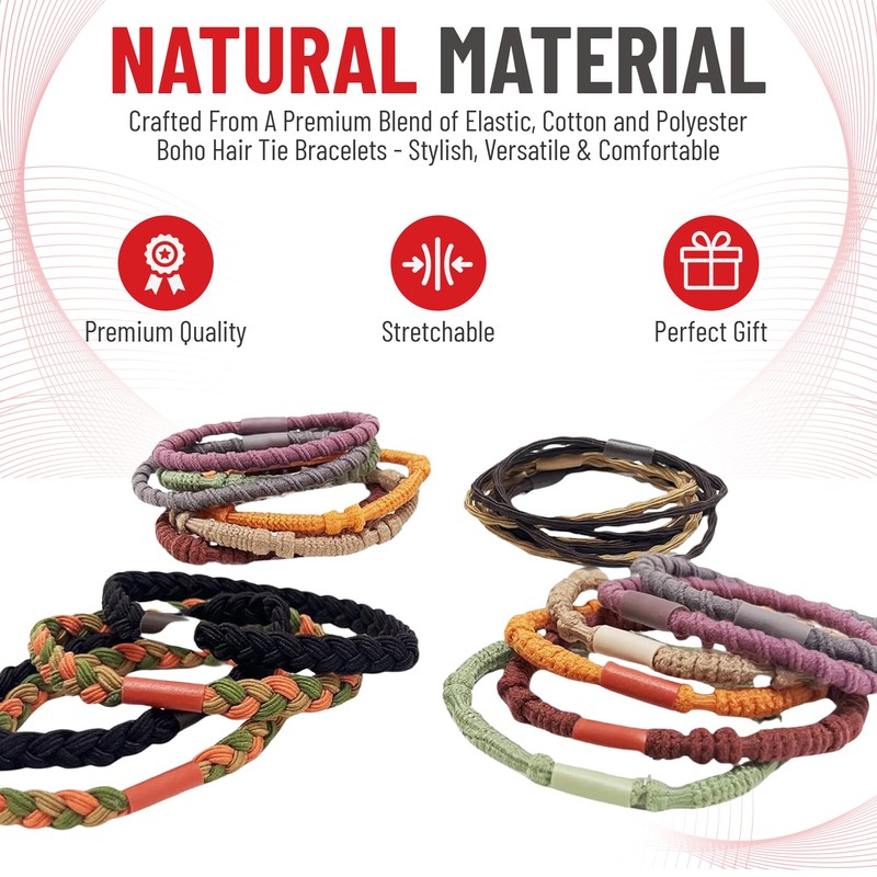 - Gift-Ready Packaging: Presented in a charming package, our Boho Hair Tie Bracelet Set makes for an ideal gift. Whether treating yourself or surprising a friend, this set adds a touch of bohemian charm to any occasion. Give the gift of style and functionality with these fashionable and practical hair accessories.