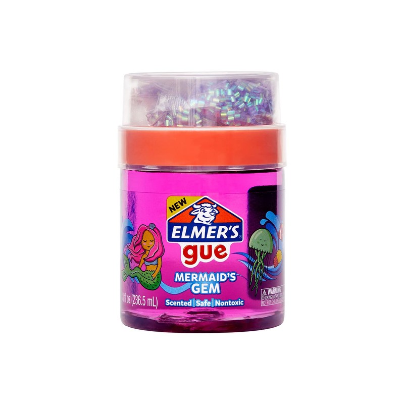 - Product Overview: Comes with pre-made slime made from Elmers glue, and a sparkling topping that can be mixed and played. This slime is a transparent ping-color inspired by the ocean swimming mermaids