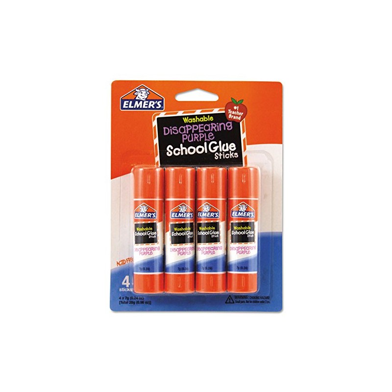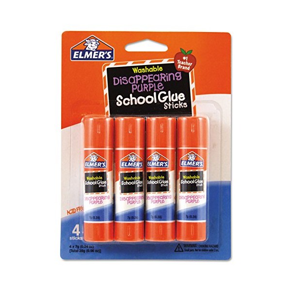 Elmer's E543 Washable School Glue Sticks, Disappearing Purple, 4/Pack