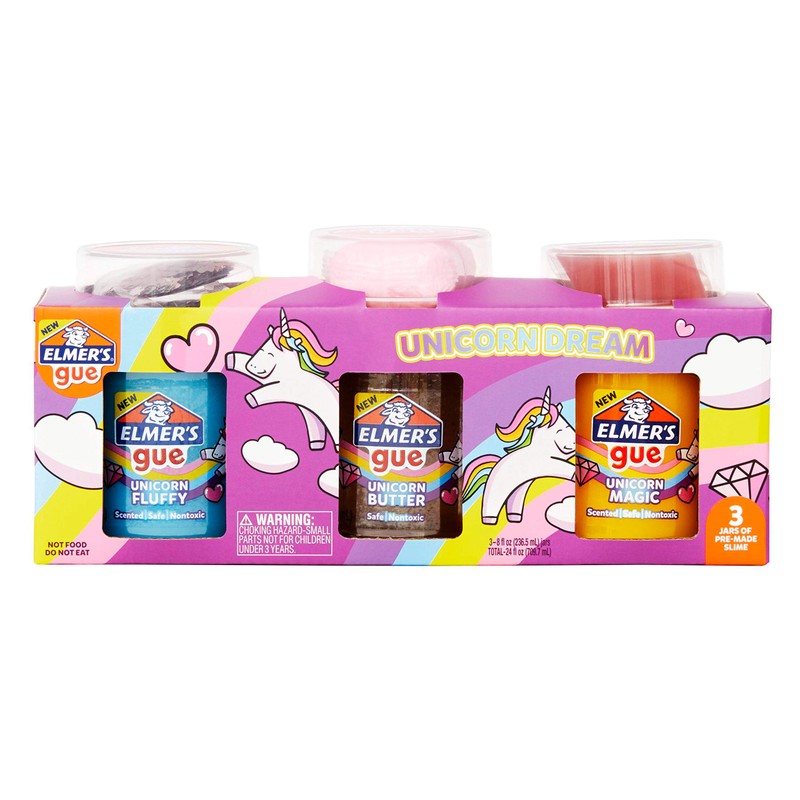 Elmer’s Gue Premade Slime, Unicorn Dream Slime Kit, Includes Fun, Unique Add-Ins, Variety Pack, 3 Count