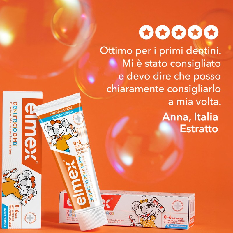 - Elmex Zahnpasta speziell entwickelt für Milchzähne von Kindern im Alter von 0 bis 6 Jahren