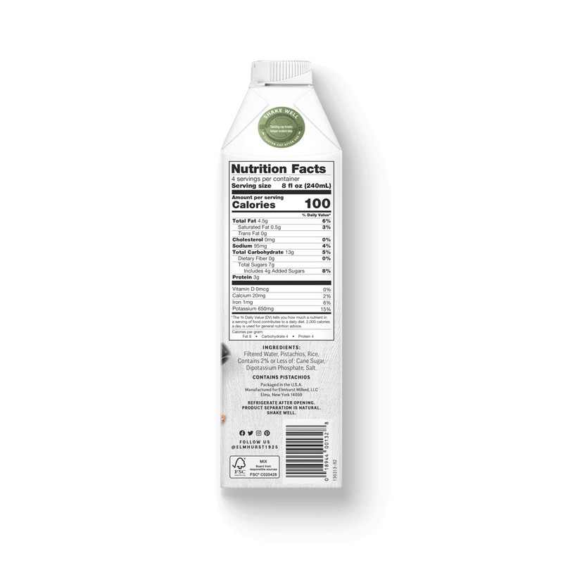 Elmhurst Elmhurst 1925 Barista Edition Pistachio Milk, Plant-Based, Vegan, 32 Ounce (Pack of 6)