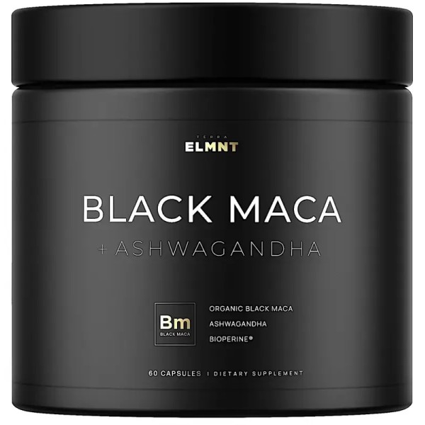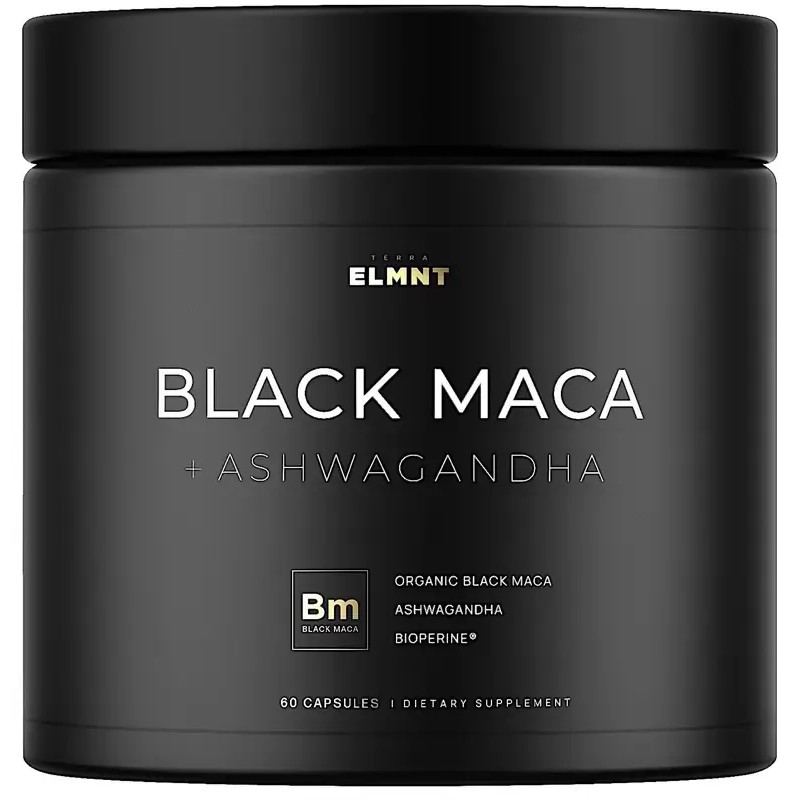 ELMNT 40x Strength Organic Black Maca Root w. Ashwagandha - High Potency Black Maca Root Capsules for Men. 100% Pure Maca Powder. Exercise support