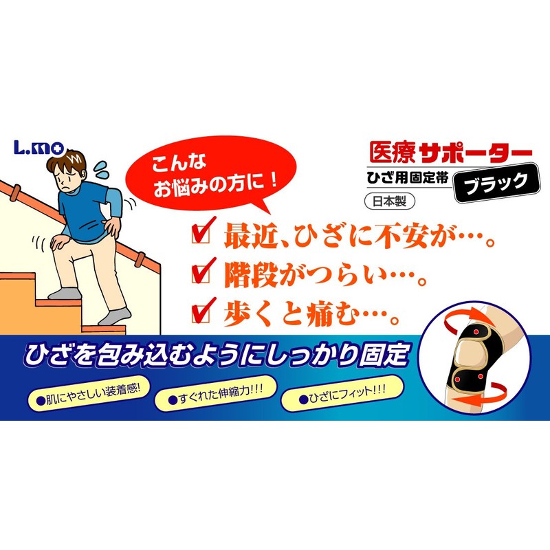 Elmo Medical Supporter, Fixed Belt for Knees, Black, L