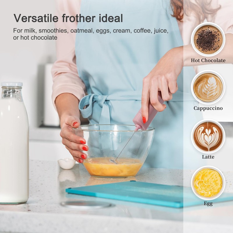 ELMWAY Powerful Electric Milk Frother, Battery Operated Drink Blender, Foam Maker Mixer, Milk Frother Handled for Coffee, Latte, Matcha, Protein Powder (Pink)