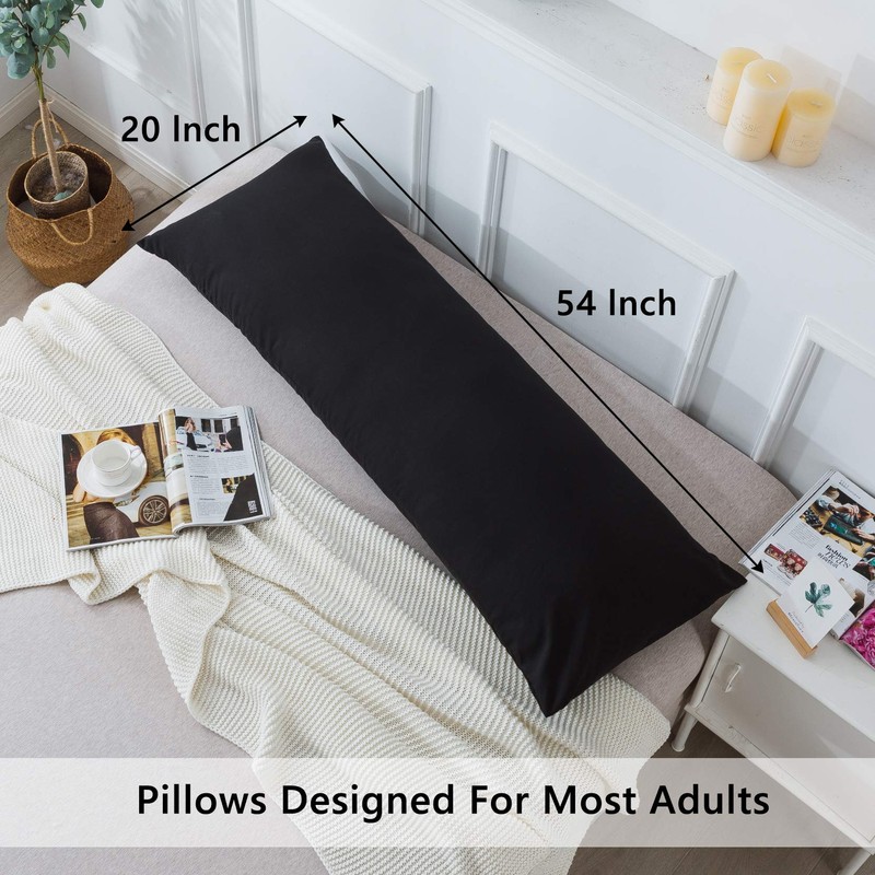 - 【Long Body Pillow】Each order includes 1 pillow insert + 1 Black 100% polyester body pillowcase.Envelope closure design (no zipper),The body pillow is skin-friendly and breathable,Filled with high quality fiber.medium density and supportive,keeping you cool and comfortable all night long.