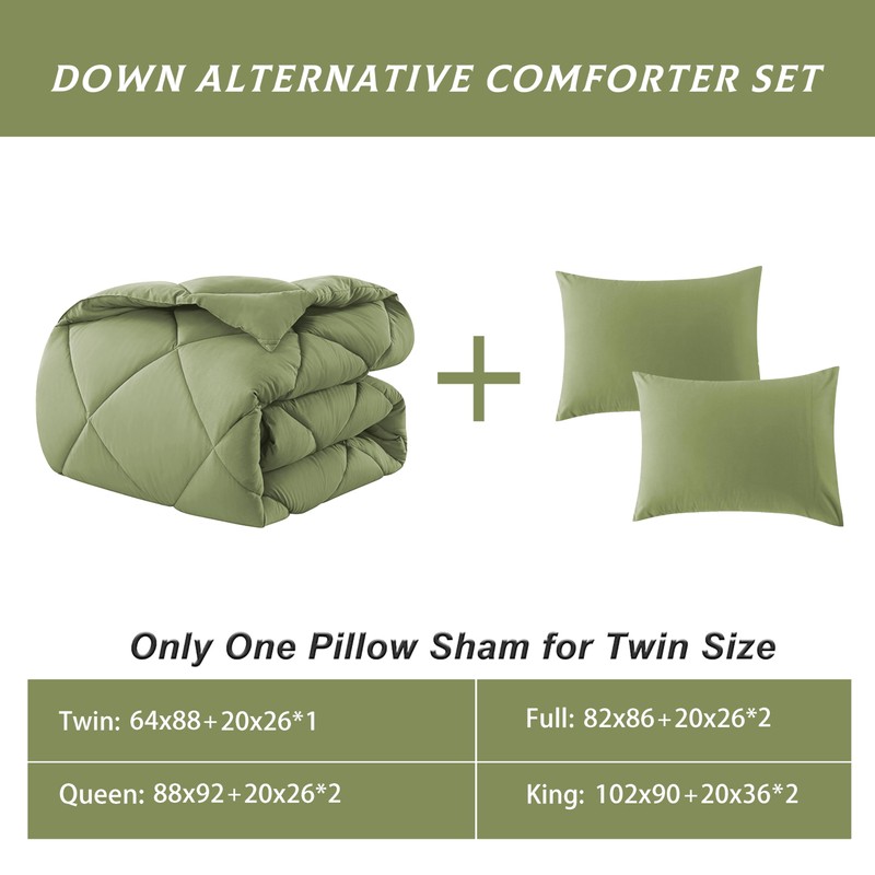 - 【2-Piece Bedding Set】Twin Sage Green comforter set includes 1* Sage Green Down Alternative Comforter (64"x88") and 1* Sage Green Pillow Cases (20"x26") with envelope closure. It fit well for twin sized bed. The bedding comforter sets can be used as a duvet insert or as a stand-alone comforter.